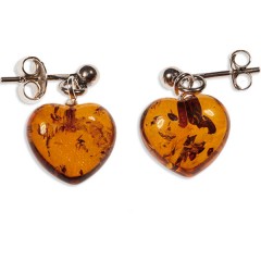 Boucles d'oreilles en argent massif avec ambres en forme de cœur. La fixation à l'oreille se fait à l'aide d'une tige sur laquelle coulisse un papillon. La tige se termine par...