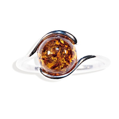 Bague en argent massif composée d'un bel ambre entouré de 2 virgules d'argent. Elle est intemporelle.