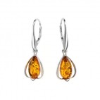 Bague ambre et argent avec ambre ovale légèrement pointu .